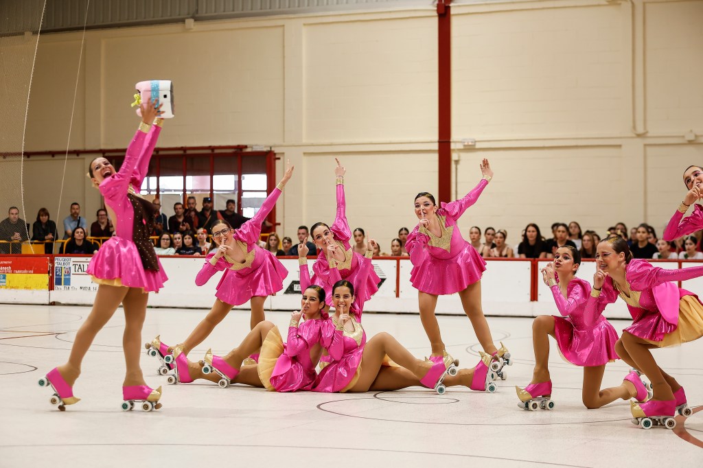 Per últim la coreografia “La fira” de la categoria màster, categoria que va néixer al nostre club i que ja forma part d’alguns esdeveniments de patinatge grups xou. Aquesta última categoria participa en la modalitat d’exhibició.